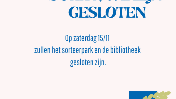 De gemeentelijke diensten zullen gesloten zijn op zaterdag 15/11.lees meer