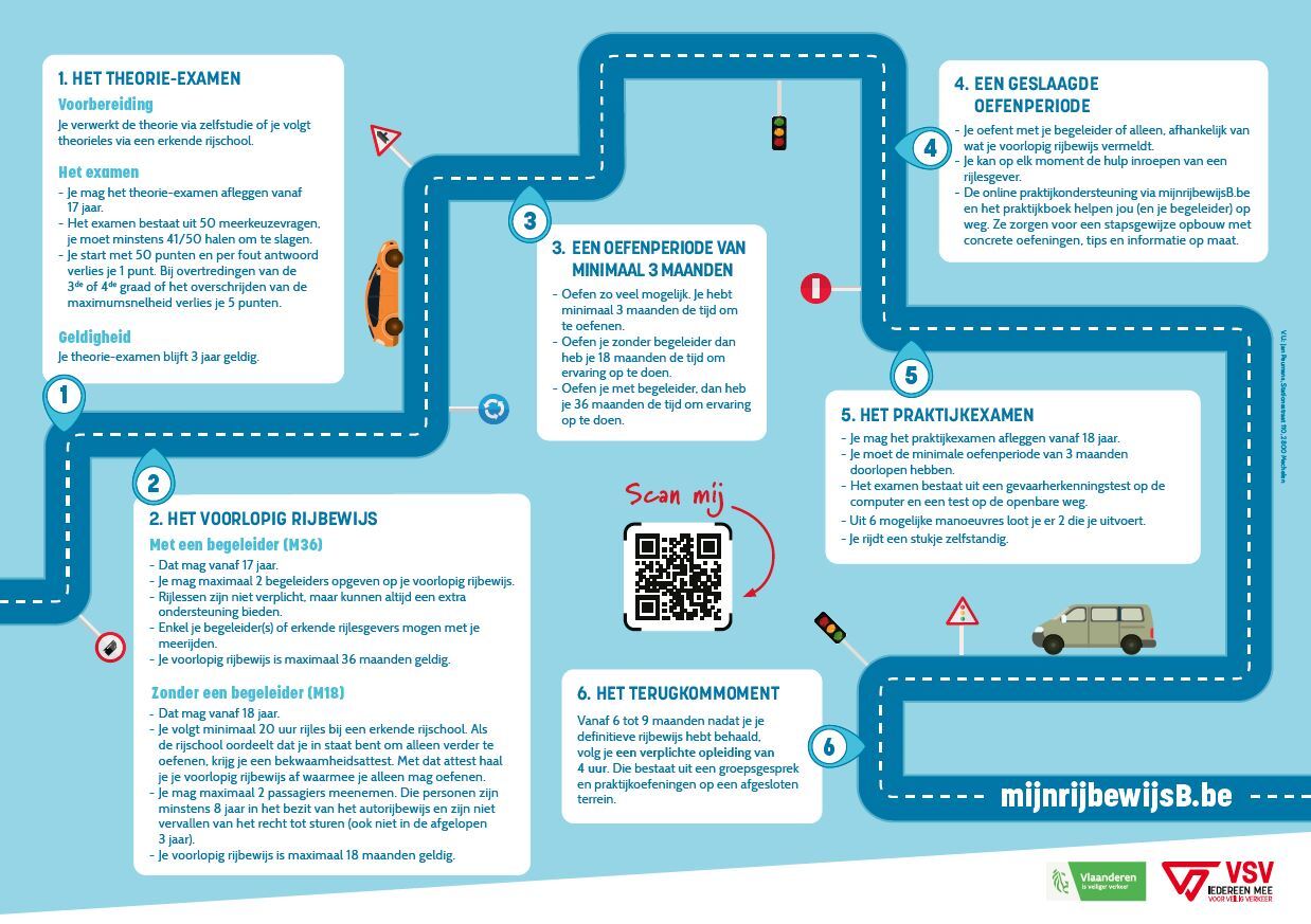Meer informatie over de verschillende soorten voorlopige rijbewijzen, hun voorwaarden en de voorwaarden voor de eventuele begeleiders kan je terug vinden op de website van Vlaanderen.